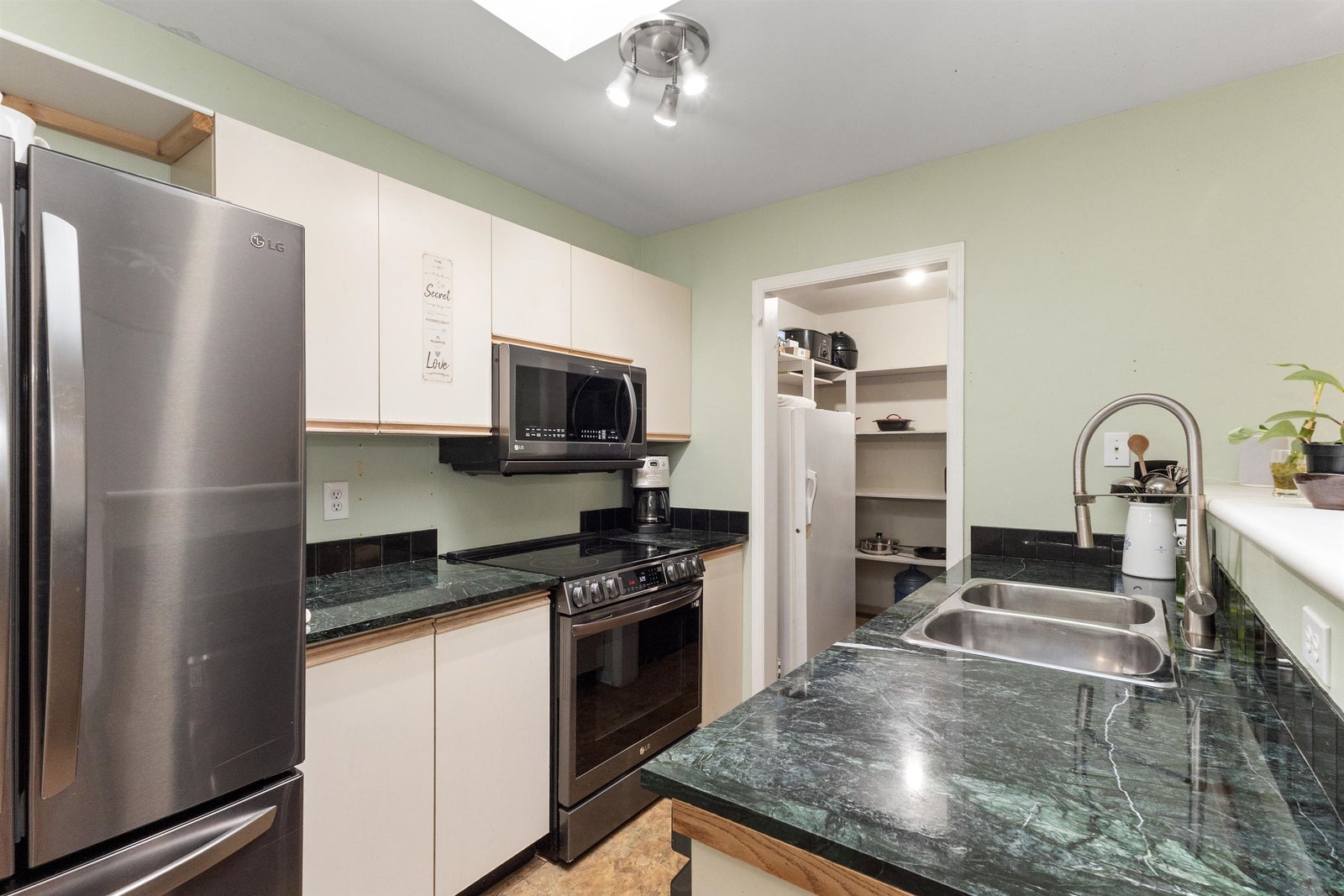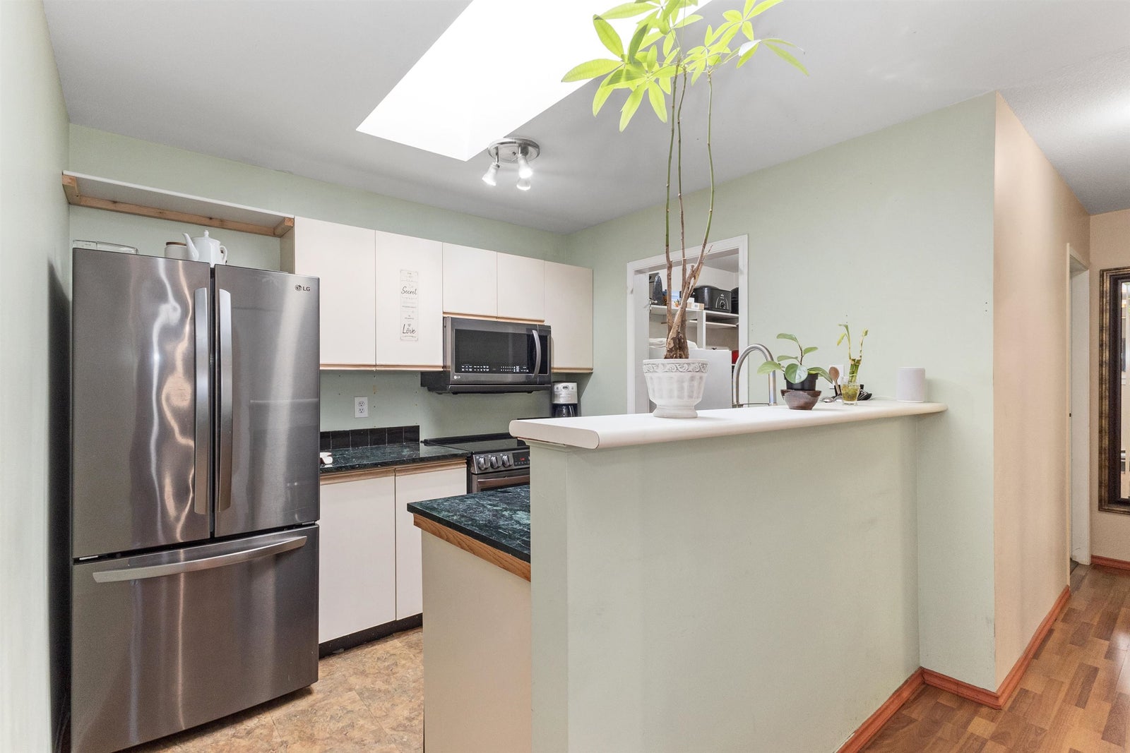 Welcome to the desirable community of Alderglen at 1750 McKenzie Road, where tranquility and convenience meet. This bright and spacious 2-bed, 1-bath upper corner unit offers an inviting atmosphere with its East-facing orientation, providing gentle morning sunlight and comfortable coolness in the afternoons and plenty of natural light. The large private balcony overlooks lush greenspace, creating a serene escape. The laundry room and kitchen off the pantry provides plenty of storage space updated with laminate flooring and newer appliances only 2 years old. This well-maintained unit is in a great spot in the complex with parking conveniently located right in front, and proximity to shopping, UFV, the highway, and all essential amenities. The perfect blend of peaceful living & convenience.