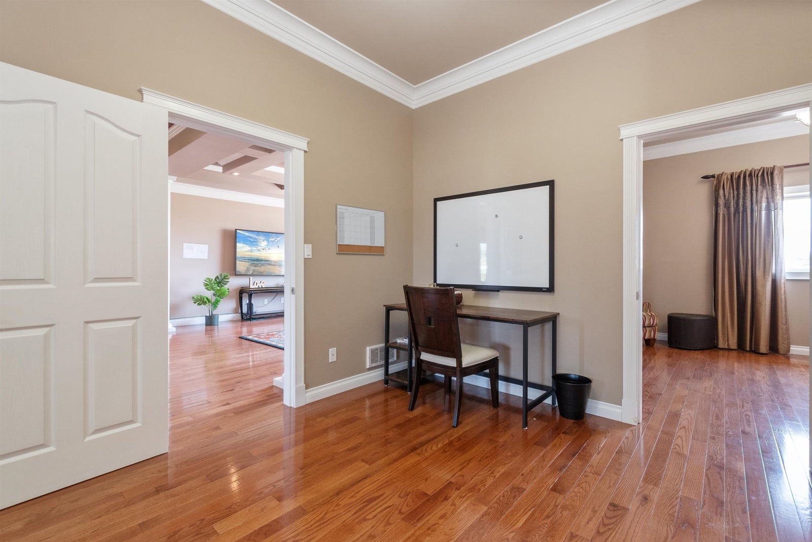 A stellar opportunity knocks: a one of a kind nearly 5000 SF custom built property on a large .35 acre lot with private access to Glasgow Park. The main floor (fully concrete) boasts 2,676 SF of garage/workshop space, RV parking, Rec Room/storage area with polished heated concrete floors throughout & 2 pc bath. The living area spans across 2,300 SF! Truly luxurious home with massive rooms, extra high ceilings, hardwood floors, outstanding chef's kitchen, 3 bdrm(2 primary bedrooms)+office & 3 bathrooms. Huge gravelled front yard can fit dozens of cars, trucks, RVs & containers. Perfect for home-based business owners (farmers, mechanics, woodworkers, pet groomers, etc.). 400amps service!