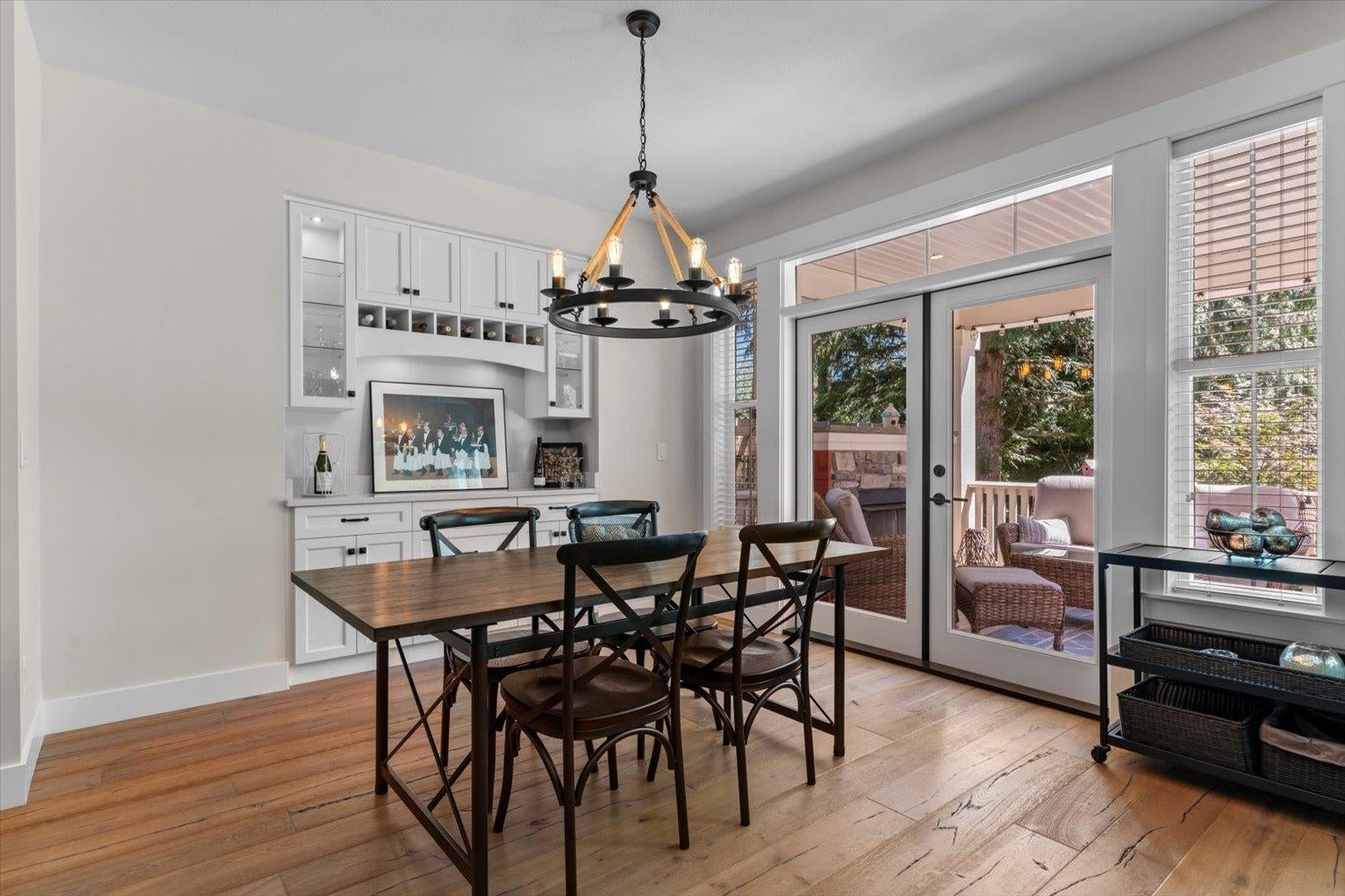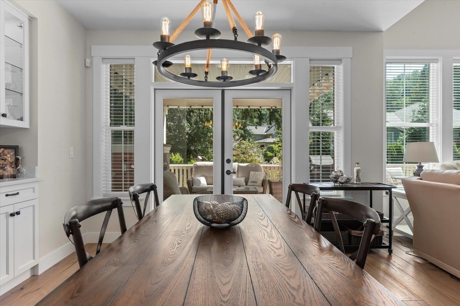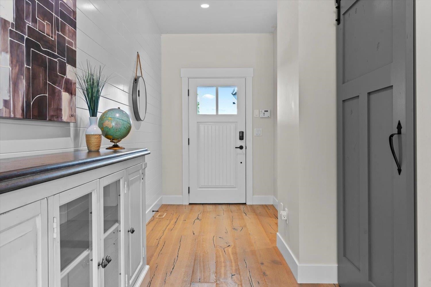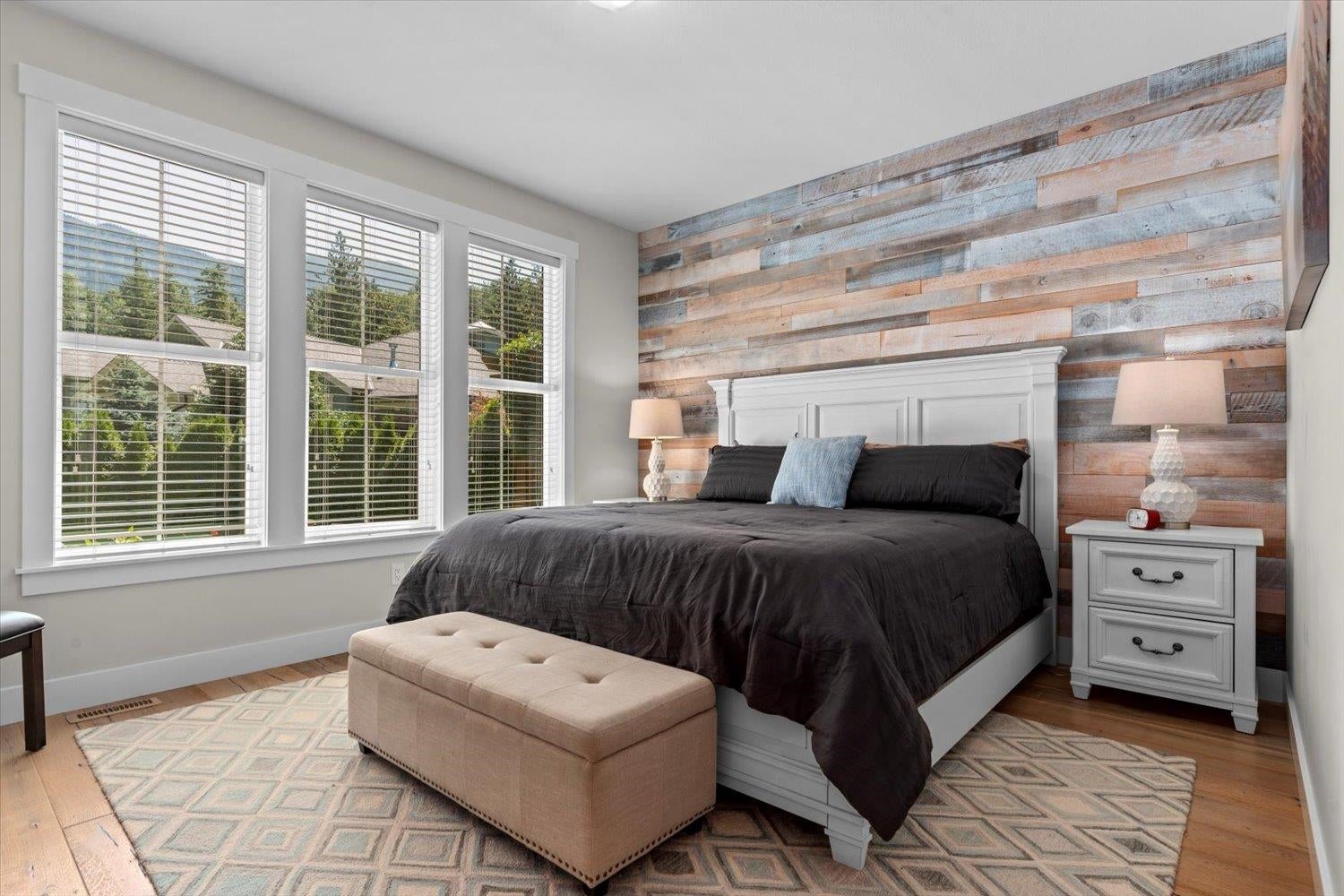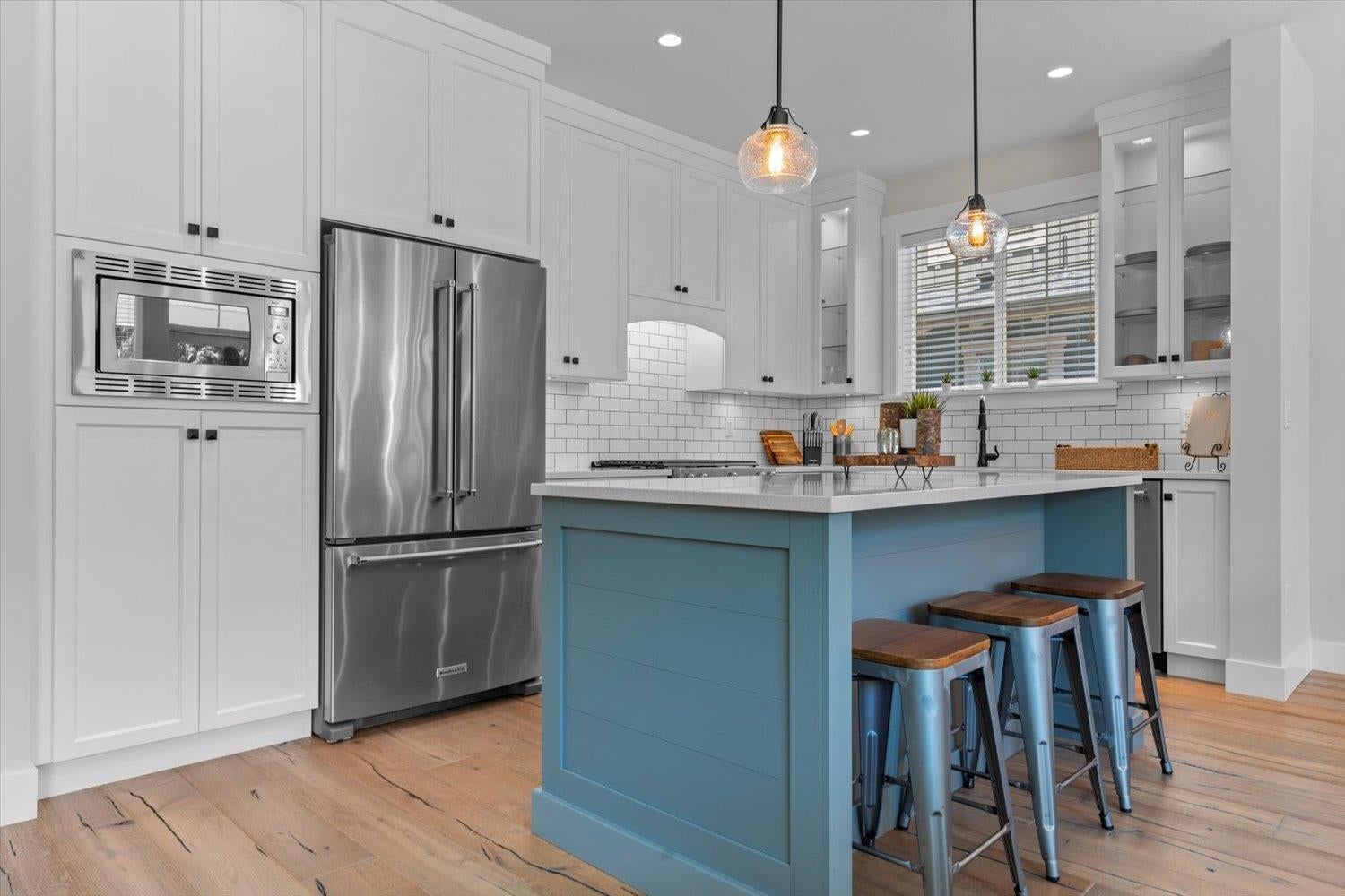 This coveted 2 bed + den rancher blends modern farmhouse charm with elevated design, boasting vaulted ceilings, wide-plank hardwood floors & barnwood feature walls. Open-concept layout designed for effortless living and entertaining. Chef-inspired kitchen has s/s appliances & quartz counters and flows seamlessly into a dining area & spacious great room. Primary suite w/ ensuite & walk-in closet. Generous 2nd bdrm, full bath, and versatile den ideal for media room / home office or 3rd bdrm. French doors open to an expansive patio w/ outdoor fireplace. Deluxe 2 car garage w/ epoxy floor & wall organizers! Bonus A/C & exterior gemstone seasonal lighting. Creekside Mills is a gated community surrounded in nature offering a resort-inspired lifestyle, community gardens & scenic walking trails.