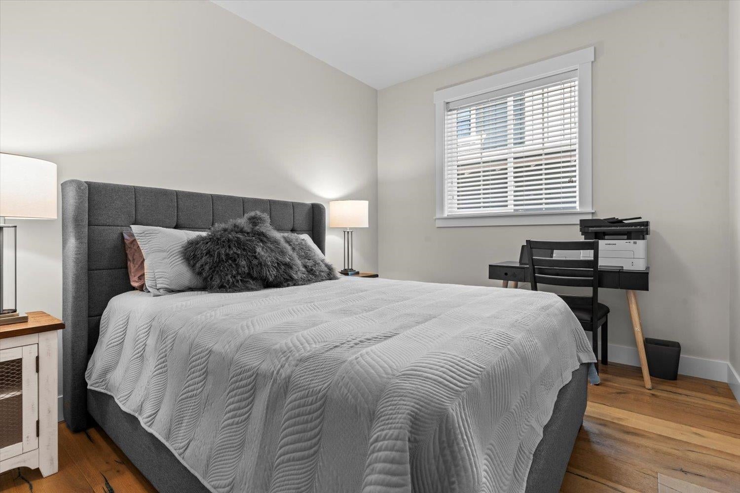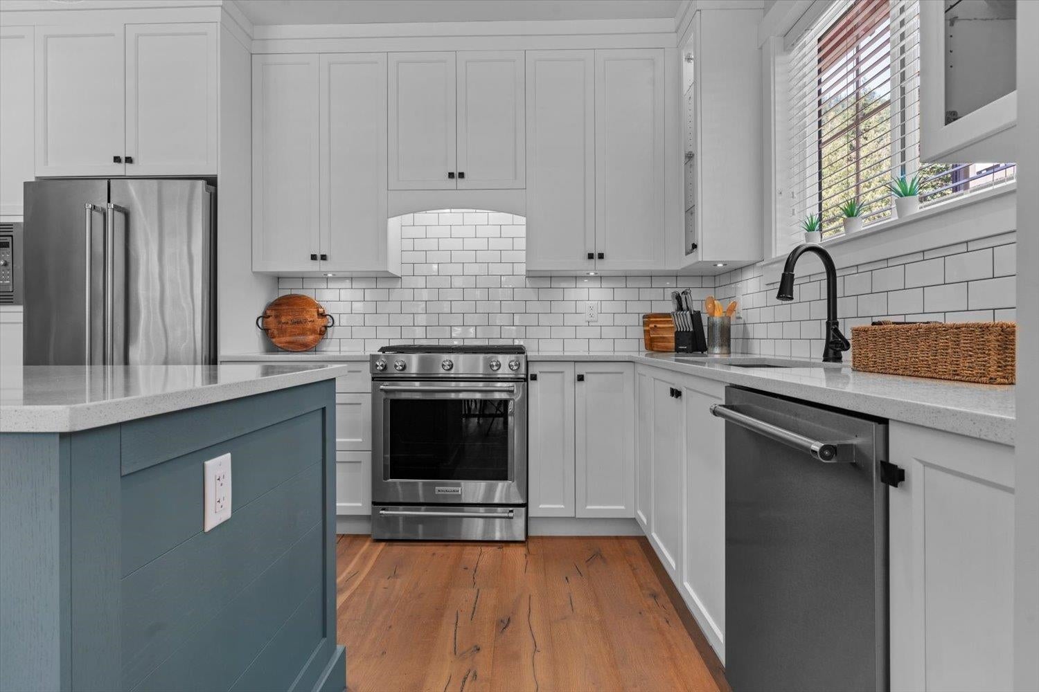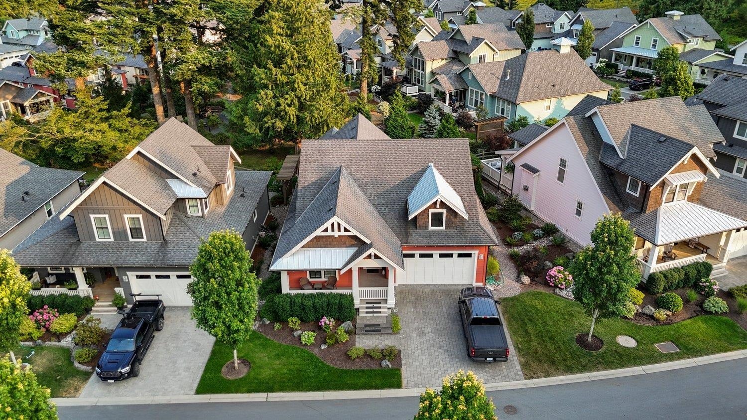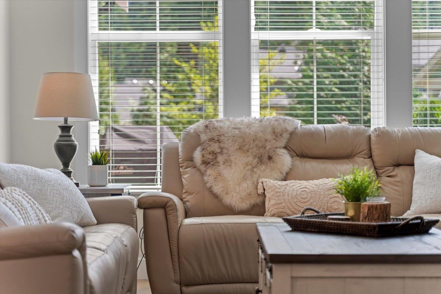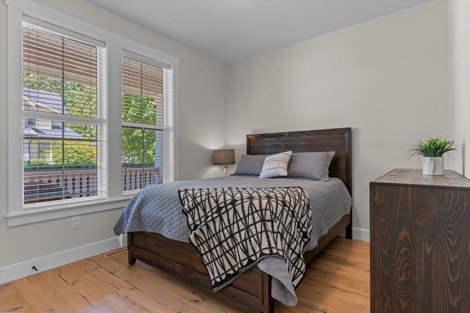 This coveted 2 bed + den rancher blends modern farmhouse charm with elevated design, boasting vaulted ceilings, wide-plank hardwood floors & barnwood feature walls. Open-concept layout designed for effortless living and entertaining. Chef-inspired kitchen has s/s appliances & quartz counters and flows seamlessly into a dining area & spacious great room. Primary suite w/ ensuite & walk-in closet. Generous 2nd bdrm, full bath, and versatile den ideal for media room / home office or 3rd bdrm. French doors open to an expansive patio w/ outdoor fireplace. Deluxe 2 car garage w/ epoxy floor & wall organizers! Bonus A/C & exterior gemstone seasonal lighting. Creekside Mills is a gated community surrounded in nature offering a resort-inspired lifestyle, community gardens & scenic walking trails.